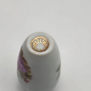 Vintage Limoges France porcelain miniature vase with a romantic scene on one side and a flower design on the opposite side.