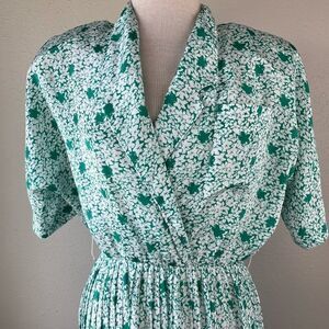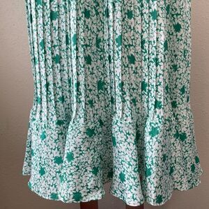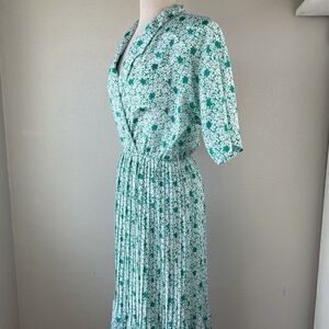 Super fun and beautiful vintage maxi dress by Lisa Petites featuring a fitted waist and pleated design. It measures 20 inches armpit to armpit and 14 inches at the elastic fitted waist. It measures 44 inches from shoulder to hem.