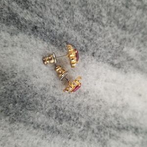 Vintage Little Rhinestone Cluster Post Earrings, Red and White Stones, Ovals