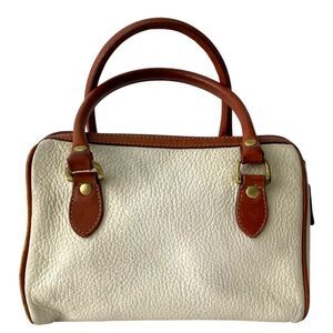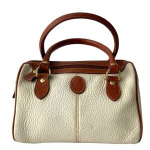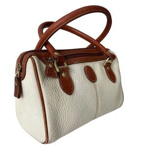 Vintage Liz Claiborne Cream and Brown Leather Satchel Bag