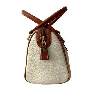 - Step into timeless style with this authentic vintage Liz Claiborne leather satchel, featuring a sophisticated cream and brown color block design. Crafted from genuine leather, this structured handbag exudes classic 90s charm and is perfect for elevating both casual and professional outfits.