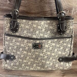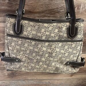 Vintage Liz & Co Canvas and Faux Leather Bag , Brown and Tan