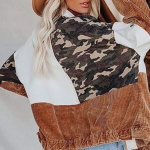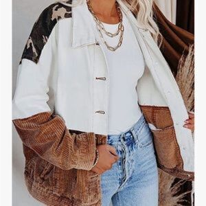 Vintage Long Sleeves Button Down Mixed Media Jacket