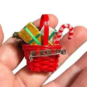 Vintage Lot Christmas Pins MYLU Cherub, Avon Christmas Basket, Stick Pin Plus