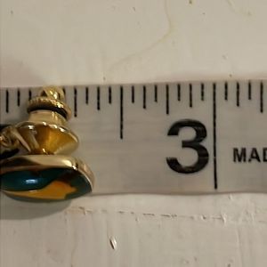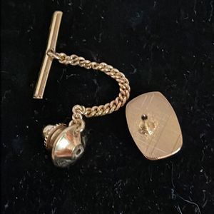 Vintage MCM Art Deco turquoise tone filled tie tack w/gold tone airplane & chain