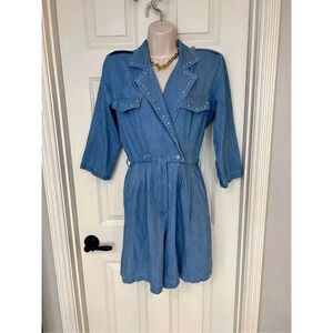 Vintage MCM D. Frank bedazzled jean denim short jumpsuit size 6