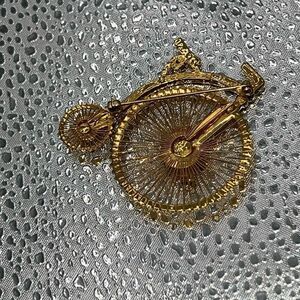 Vintage MONET Bicycle Brooch Gold Tone Old Fashioned Bike Tricycle Collectable