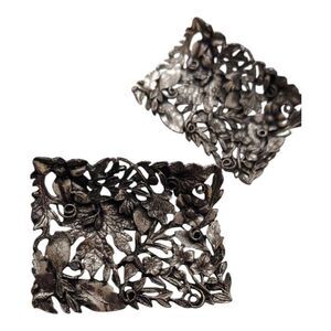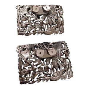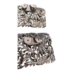 Vintage MUSI Shoe Clips Buckles Repousse Set Of 2 Floral Leaf Silver Tone