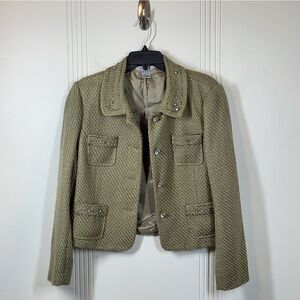 Vintage Mac & Jac Jacket With Rhinestones. Size 14. Buttons up the front with four front pockets. Embroidery & embellishments around the collar & pockets. Beautiful Rhinestone buttons !
