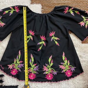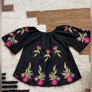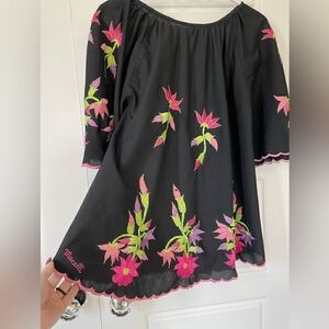 Vintage Macelli Black & Pink Embroidered Floral Tunic