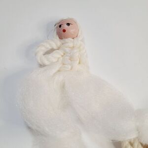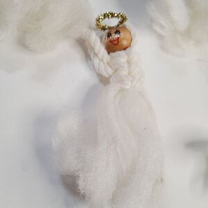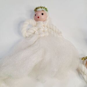 Pre-owned vintage unbranded probably handmade Vintage Macrame Wood Fluffy Angel Ornament Lot of 6