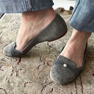 Vintage Marc Jacobs gray suede leather flats with pearl and studs