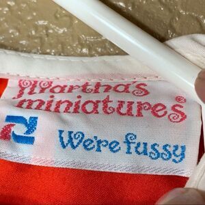 Vintage Martha’s Miniatures red dress. Great condition! This dress is gorgeous! It has bells underneath. There is a tiny stain shown in the 3rd pic. There is no size tag but it looks like a girls size 7 or 8 but please see photos for measurements.