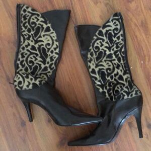 Vintage Max De Carlo unique leather boots with fur trim 8.5
