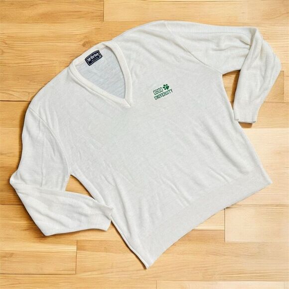 Vintage Mc Briar White Ohio University Sweater V Neck Extra Large XL Dad