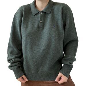 Vintage Mens 1990s Polo Ralph Lauren Lambswool Teal Green Collared Sweater XL