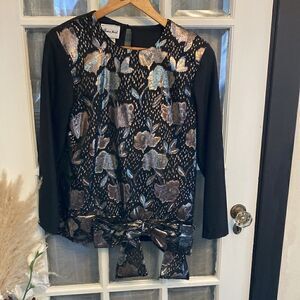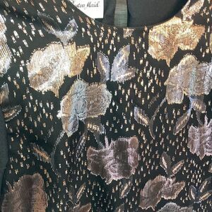 Vintage Metallic Silver and Gold Floral Bow Blouse