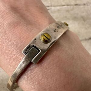 Vintage Mexican Sterling Bracelet With Gold Tone Screw Accent