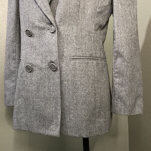 Vintage Michelle Stuart Grey Wool Double Breasted Blazer Jacket