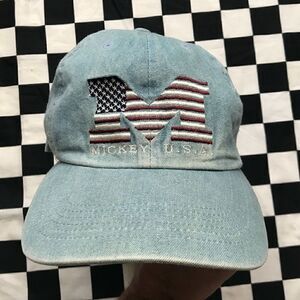 Very cool vintage Mickey USA hat. Light wash denim hat. Adjustable strap. In excellent shape.