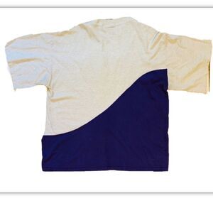 Gray and purple shirt with embroidery across the chest. Some yellowing around the collar a couple of small spots as shown in the pictures