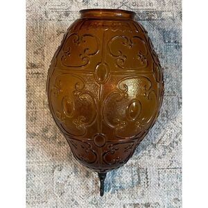 Vintage Mid Century Modern Hanging Amberina Amber Lamp Pendant Globe Shade Church Gothic 15” tall 8” at widest opening is 3-1/4” diameter