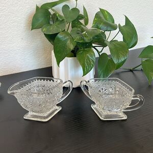 Vintage Mid-Century Pressed Glass Creamer and Open Sugar Bowl Set with Tray