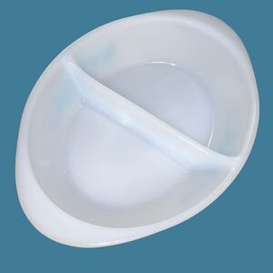 Vintage Milk Glass Fruit Pattern Glasbake Divided Casserole Dish Oval