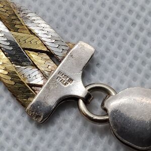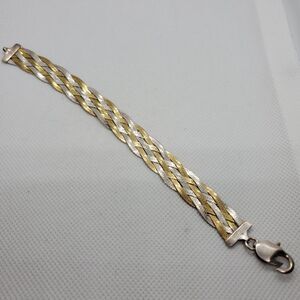 Vintage Milor Sterling Silver & Gold Braided Herringbone Bracelet