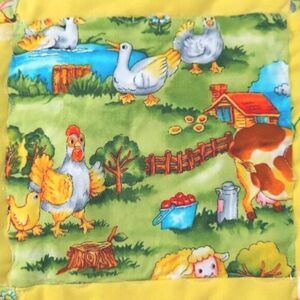 Vintage Miniature Handmade Yellow Farm Animal Themed Quilt