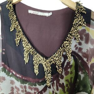 Absolutely gorgeous 100% silk dress from Mint Jodi Arnold. Sheath dress with attached kaftan style cover with beaded neckline, belted split shoulder/ cold shoulder.