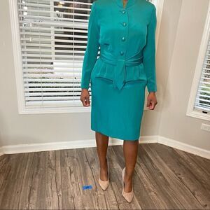 Vintage Mirella Cavorso Neiman Marcus Vintage Silk Teal Midi Dress
