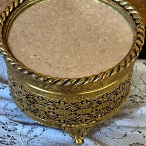 Vintage Mirrored Trinket Dish Filled with Jewelry