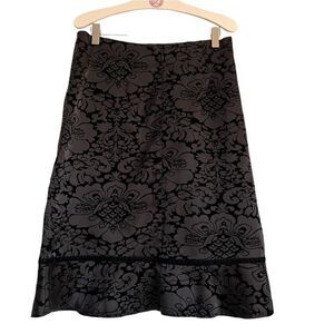 Vintage Miss Lilly Flocked Satin Black Damask A-Line Skirt Small Made in USA