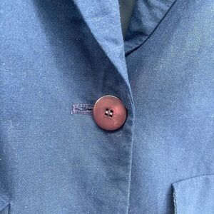 Channel timeless style with this vintage Miss Sophisticates by Pendleton blazer in a deep navy blue. Crafted in the USA from a soft rayon-linen blend, this single-button blazer features a structured silhouette with light shoulder padding, notched lapels, and functional side pockets.