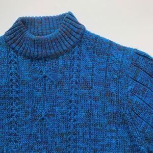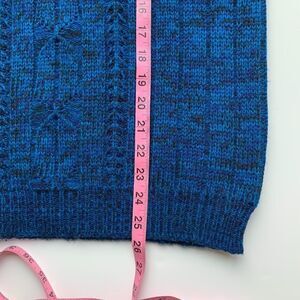 Vintage mock neck knit sweater in size 38 (measures as a medium). Blue and black acrylic yarn. Dope knit detailing in front. Excellent condition! No stains or fraying. Reference pictures for measurements.