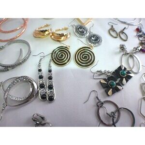This lot of 23 vintage/modern drop earrings features a mix of rhinestones, beads, and silver/gold tones. The earrings are designed in a dangle/drop style, adding a touch of elegance to any outfit. With a colorful multicolor scheme and the use of rhinestones as the main stone, these earrings offer a unique and eye-catching accessory option for vintage and antique jewelry enthusiasts.