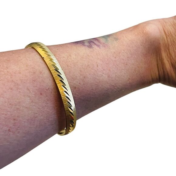 Vintage Monet Gold Etched Bangle Bracelet. Excellent vintage condition.