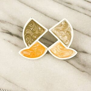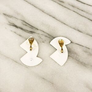 Vintage Monet Earrings Enamel White Yellow Green Geometric 80s Clip On