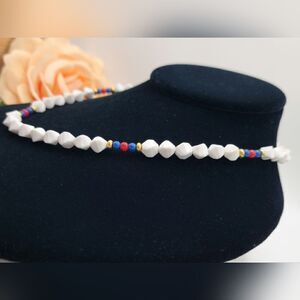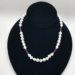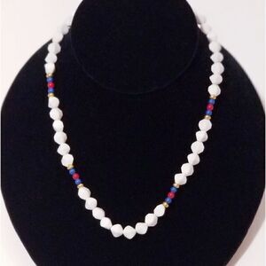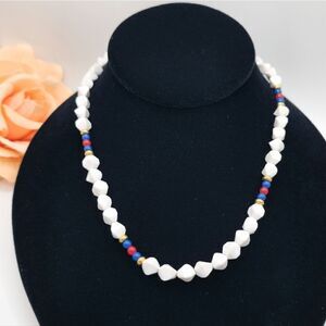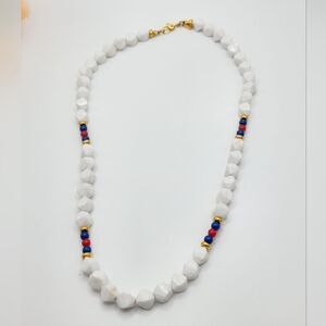 Vintage Monet lucite red white & blue beaded necklace