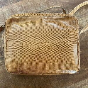 Petite vintage glazed lizard hand bag from Morris Moskowitz. Nice vintage condition with a little wear to the gold plaque.