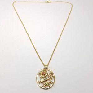 Vintage Mother Pendant Necklace, Floral Design Pink Rhinestone, Gold Tone Chain