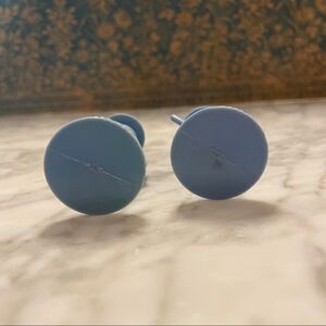 These little vintage blue plastic Mr. Peanut shakers are in excellent condition. The hat unscrews for the salt and pepper. They are identical though, so it might be hard to tell which is which. Lol