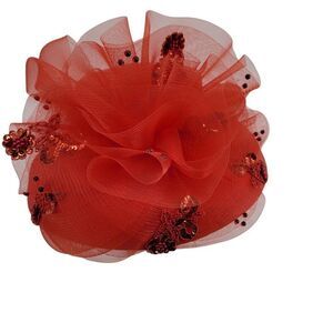 Vintage Ms Divine Red Hat Church Derby Netted Bow Flower Sequin Applique Sraw