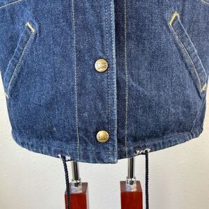 Classic Ms. Lee denim vest featuring a draw string fit at the hem. It measures 19 inches armpit to armpit and 22 niches from shoulder to hem. It is in like new preowned condition.