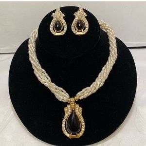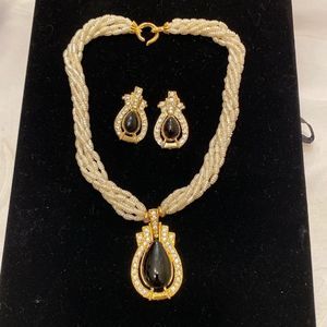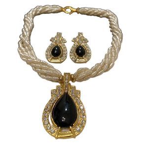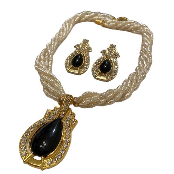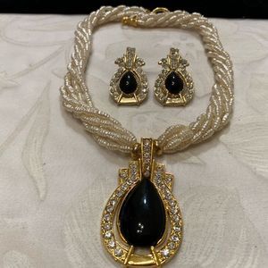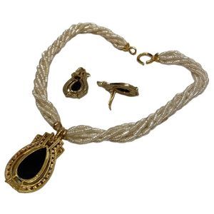 Vintage multi strand pearl necklace with pendant and matching earrings