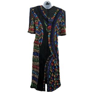 Vintage Multicolor Beaded & Sequin Dress | Eves Allure | Size Medium | Made in I