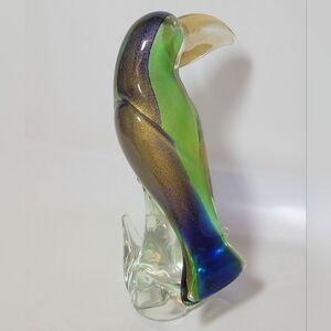 Vintage Murano Glass Toucan 11" Sculpture With Gold Leaf