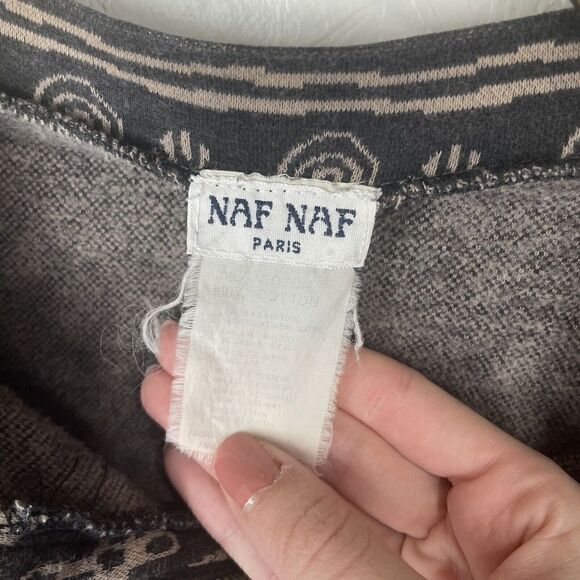Vintage NAF NAF Paris Tan Black Jacquard Quarter Zip Pullover Sweater Size M/L