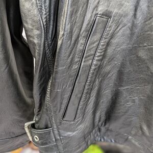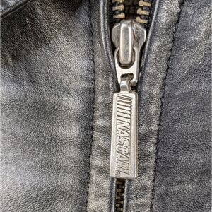 This is a vintage NASCAR 2000 genuine leather jacket that is perfect for any fan of the sport. The jacket is made of high-quality leather and has a bomber style that is both classic and versatile. It comes in black and features the NASCAR logo on the front and back, making it a must-have for any fan of the sport.
